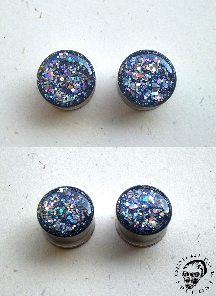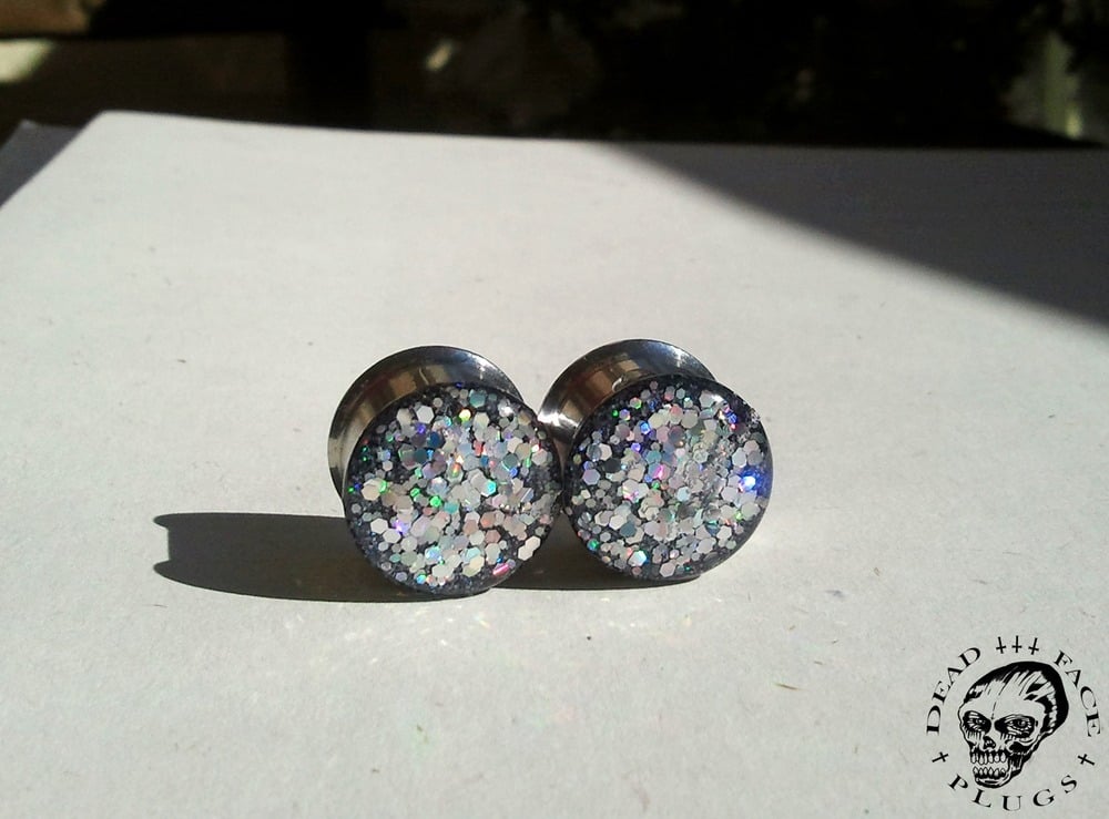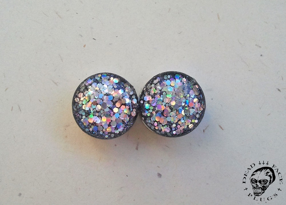 Graphite Holographic Glitter Plugs for Stretched Ears