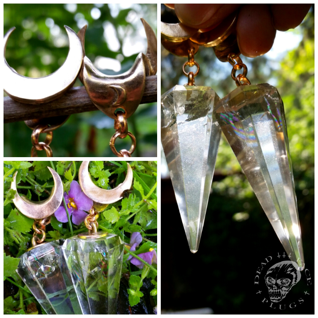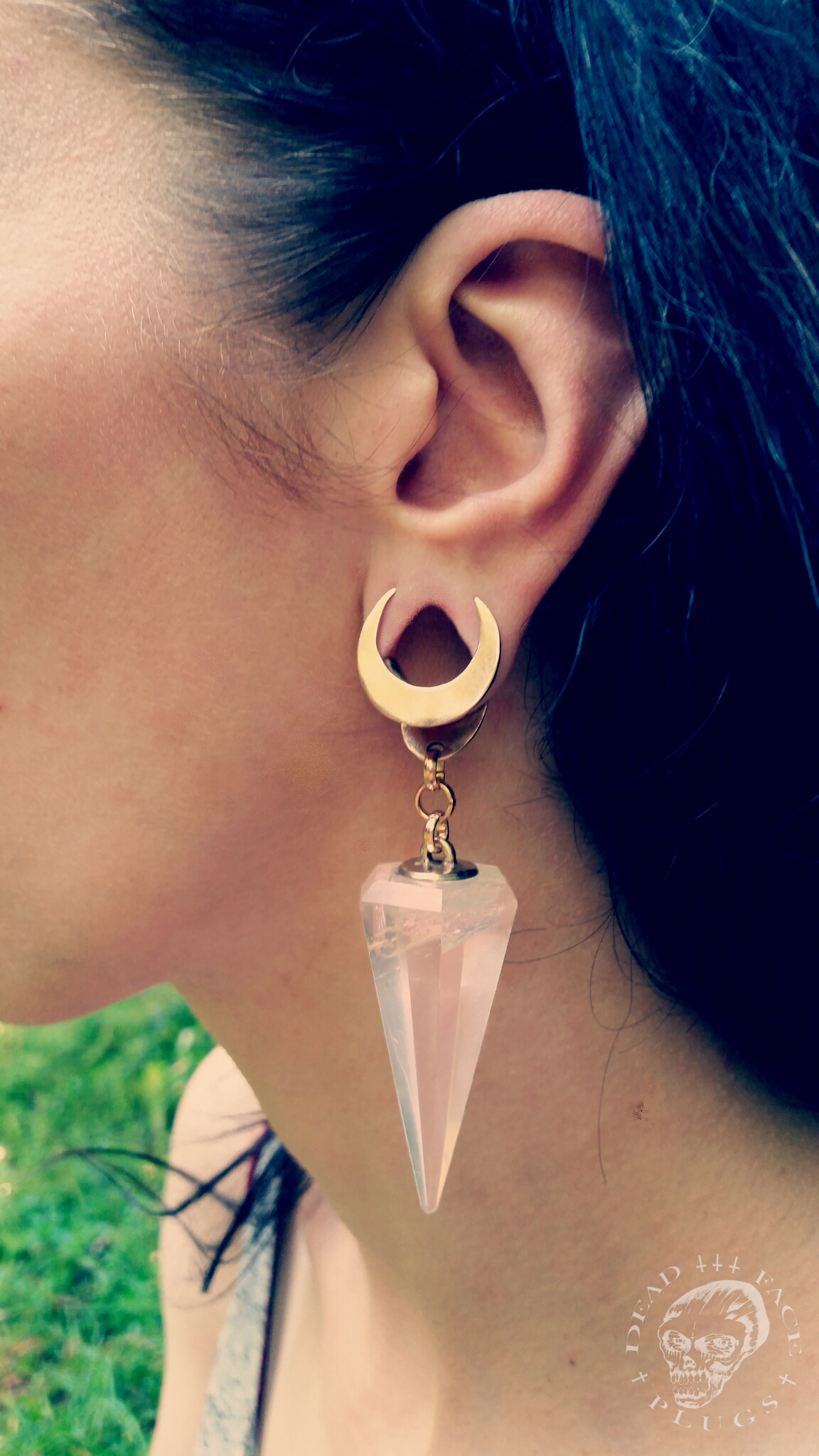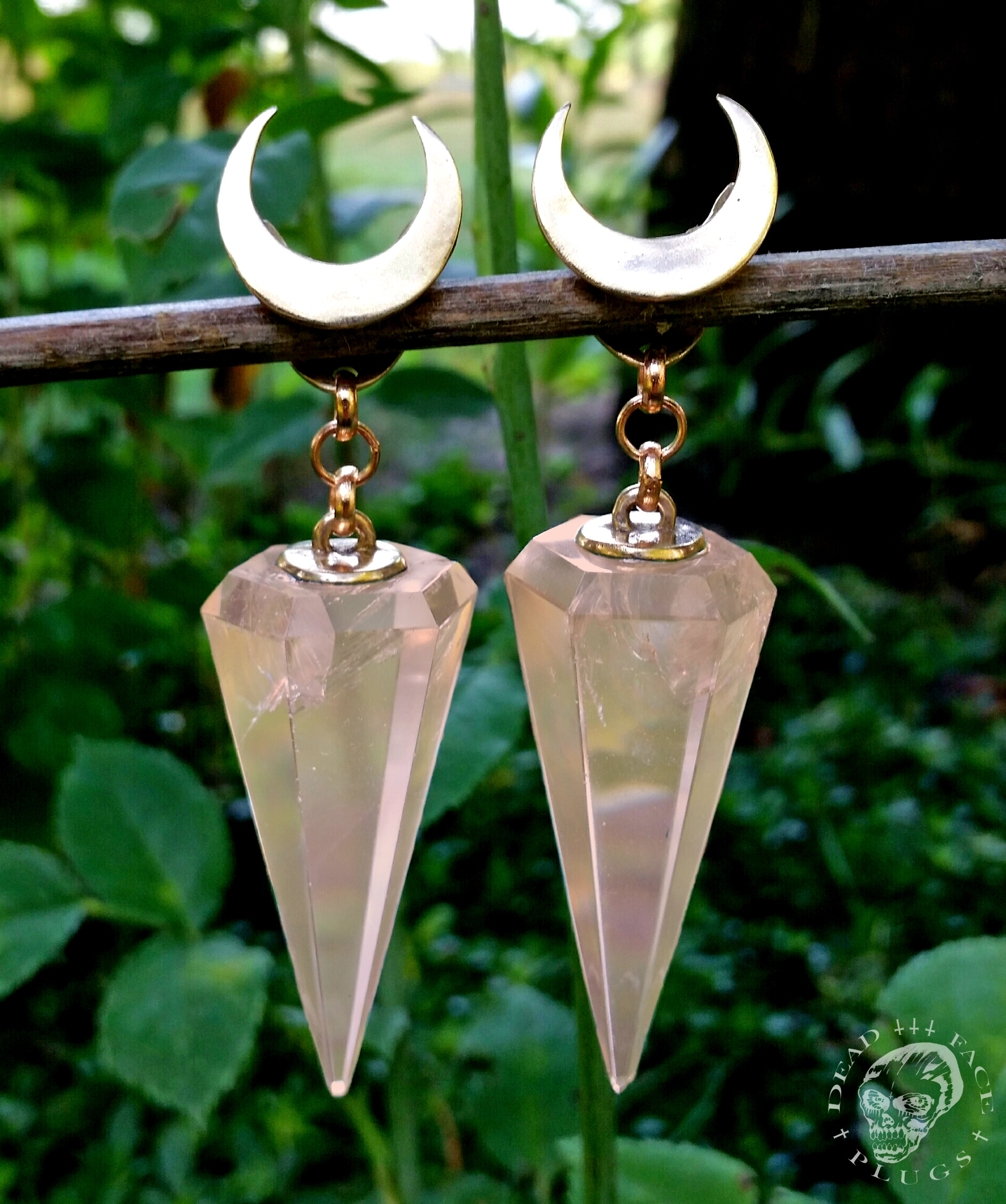 Moon & Rose Quartz Ear Weights - Crescent Moon Ear Adornment