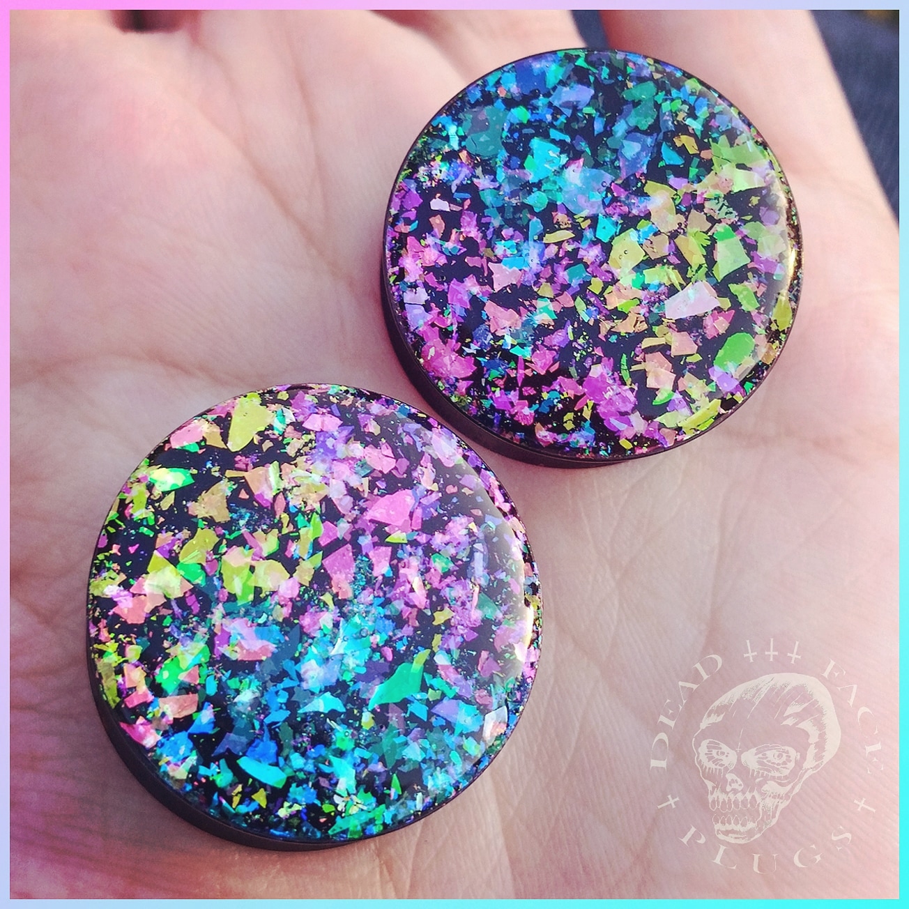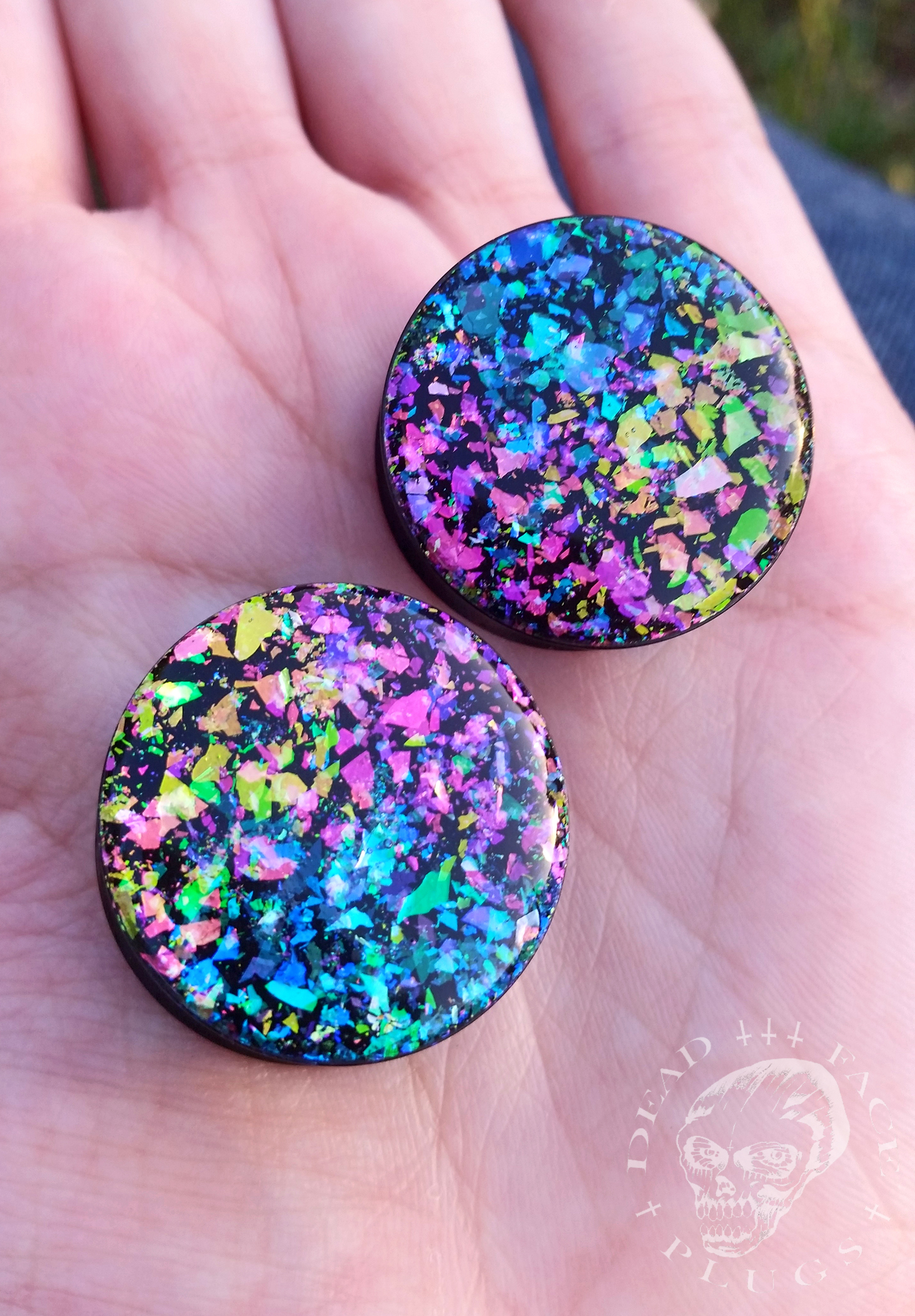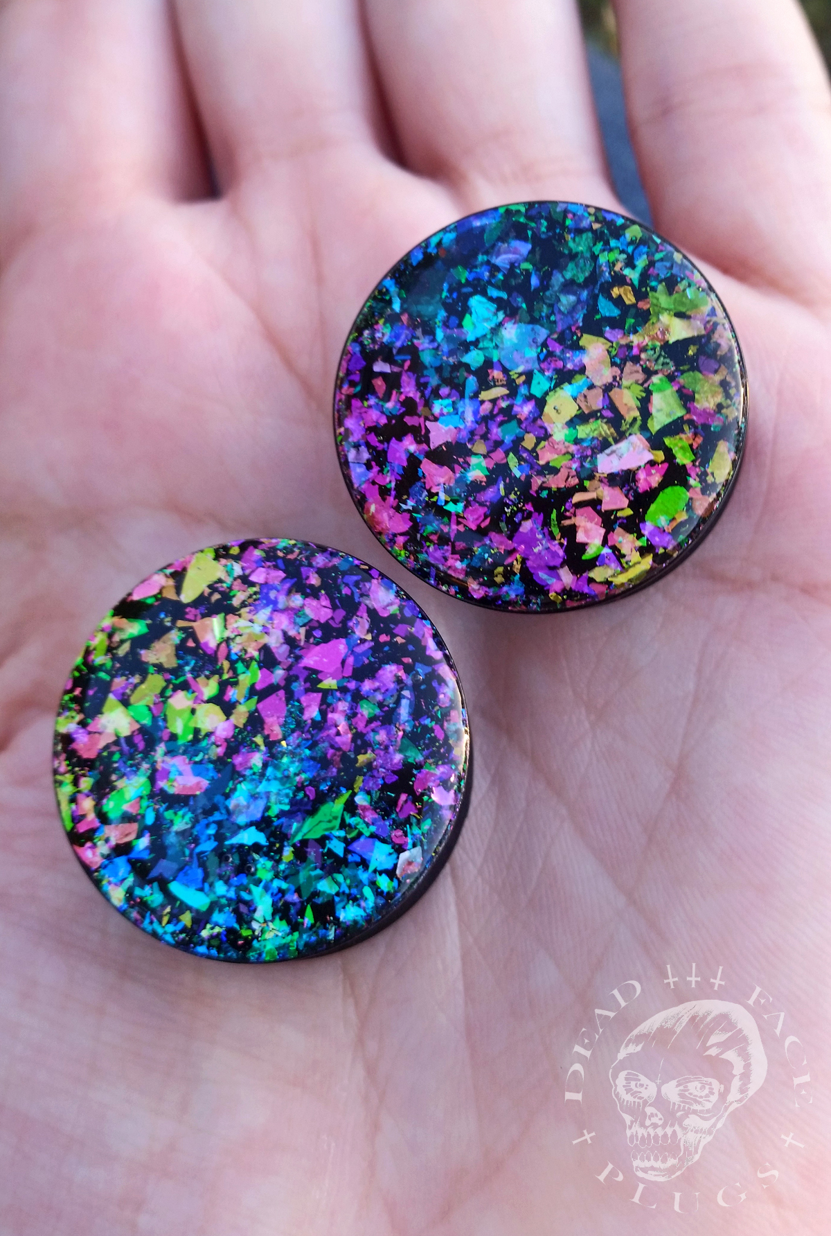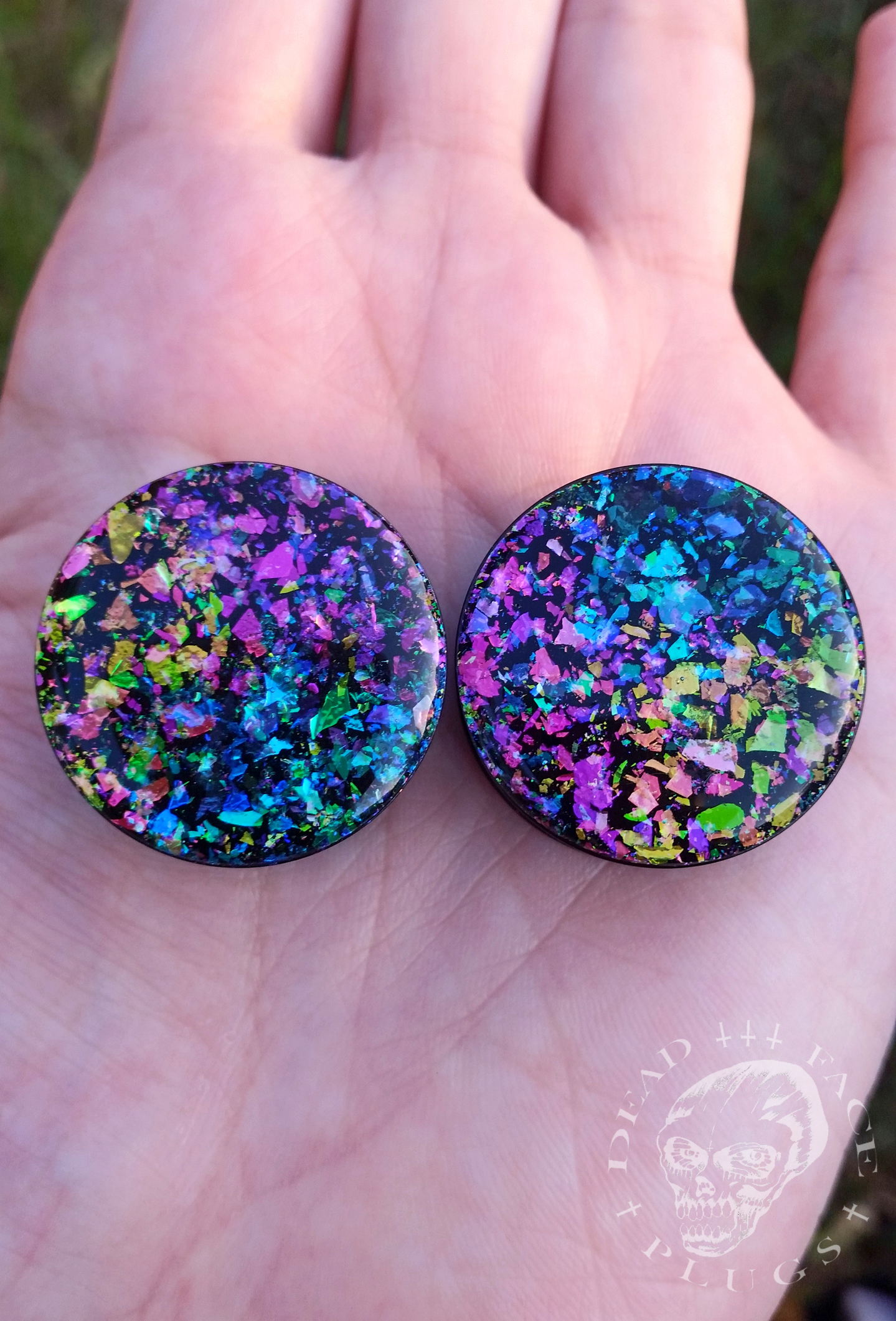 Black 'Shimmer' Rainbow Plugs for Stretched Ears