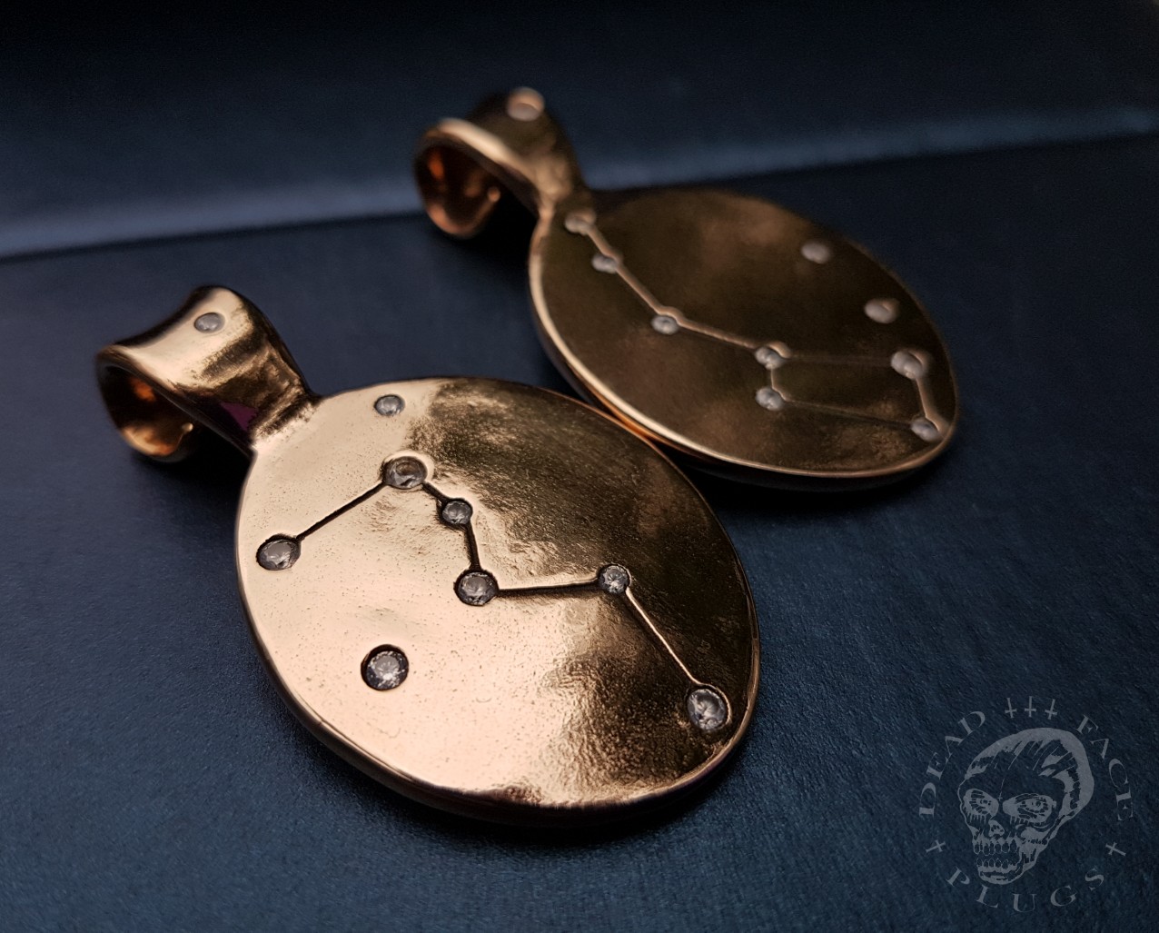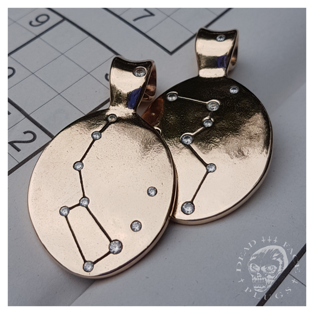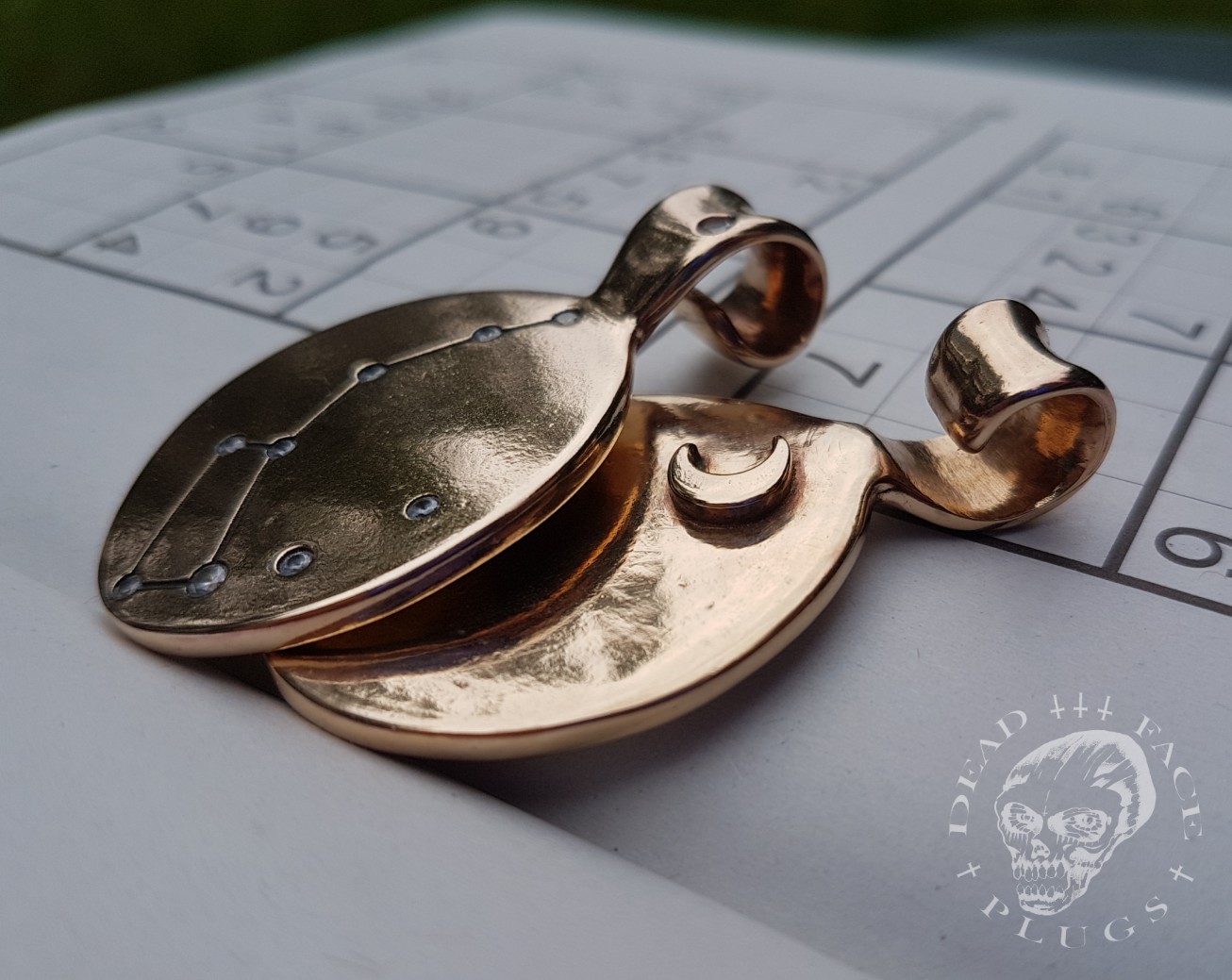 Mirror finished bronze and white cubic zirconias (2 and 2,5mm). Smart hook super easy to insert but well secured when in ear.